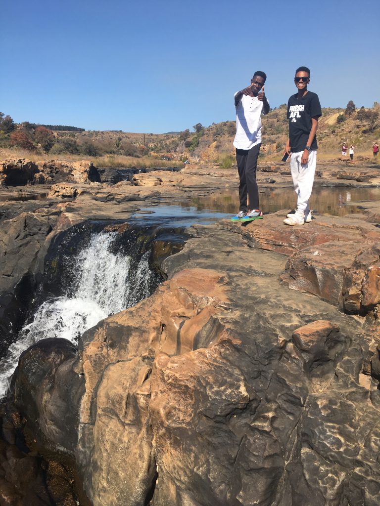 Next, we travelled north to Mpumalanga Province where the scenery became noticeably greener and we visited three of the Province’s natural wonders: The dramatic Blyde River Canyon, the rainforest escarpment of “God’s Window” with views extending all the way to neighboring Mozambique, and the “Potholes”—captivating natural pools carved by the river over centuries. Then we were on to the famed Kruger Park! Our chance for an African Safari had finally arrived. We woke up at 3 a.m. to have the highest likelihood of seeing wildlife! Lucky for us, we spotted a LION walking less than 10 feet from our safari truck! Between the morning and evening treks through the park, we spotted 3 of South Africa’s Big Five!